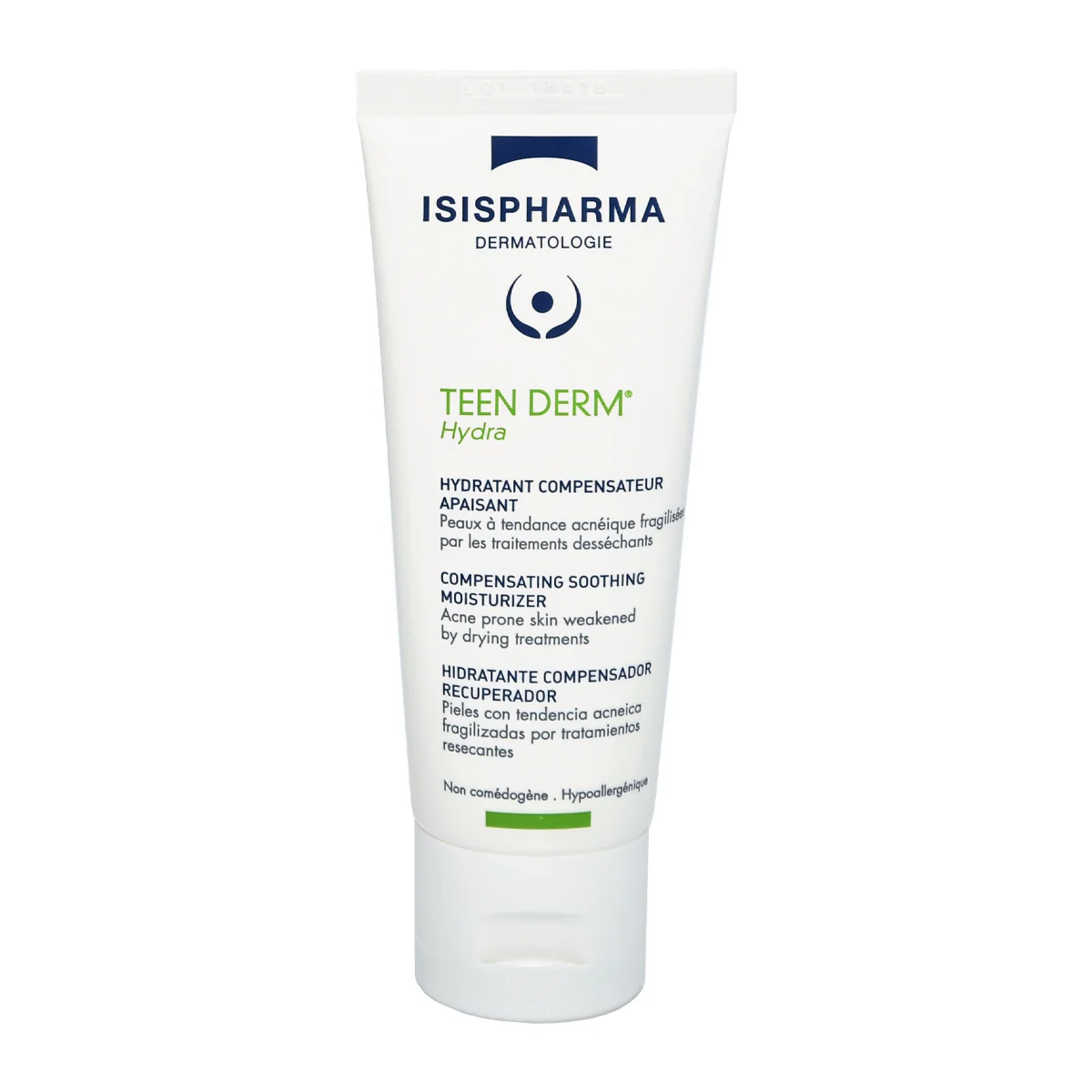 Le soin hydratant compensateur apaisant Teen Derm Hydra Isispharma est une crème hydratante spécialement formulée pour répondre aux besoins des peaux acnéiques fragilisées par les traitements desséchants. En effet, certains traitements contre les boutons d’acné assèchent considérablement la peau. Le dessèchement cutané est visible. La peau est rêche et inconfortable, et le teint, terne.